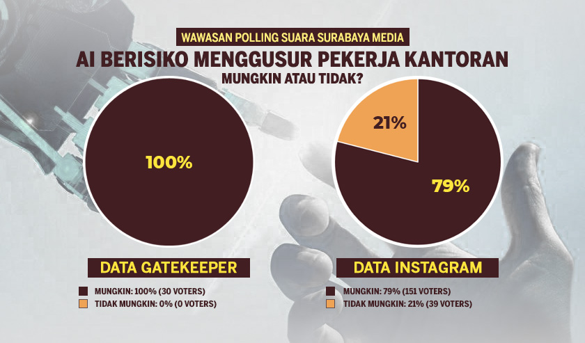 Dalam diskusi di program Wawasan Polling Suara Surabaya pada Kamis (24/8/2023) pagi, publik mengamini jika AI Generatif berisiko menggusur pekerja administrasi atau kantoran.
